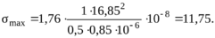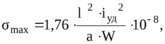Максимальное напряжение в материале шин, при длине пролета l = 1 м и расстоянии между шинами а=0,5 м, определим по формуле, МПА: