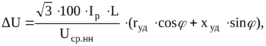 где Iр – расчетный ток в линии, А; L – длина кабельной линии, м; rуд, xуд – активное и индуктивное сопротивление кабеля, МОм/м; Uср.НН –среднее номинальное напряжение сети, подключенной к обмотке низшего напряжения трансформатора, В.