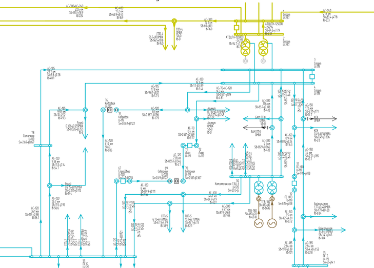 Рисунок 3.2 – Часть схемы расчета программы RastrWin. Нормальный режим 2020г. Зима максимум