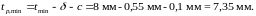Принимая минусовой допуск на прокат δ = 0,55 мм для повышенной точности изготовления листового проката (АТ) согласно [16], при условии: толщина от 5 до 10 мм, при ширине от 2000 до 3000 мм - и припуск на коррозию с=0,1 мм, получим: