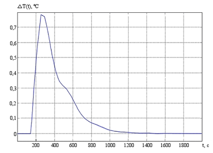 максимальное динамическое отклонение ΔT1 = 0,4 оС;