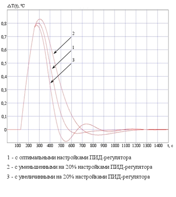 | Настройки ПИД-регулятора | Оптимальные настройки | Настройки, увеличенные на 20 % | Настройки, уменьшенные на 20 % |