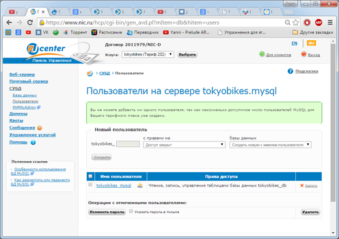 Переходим в раздел СУБД/Пользователи для получения пароля доступа.