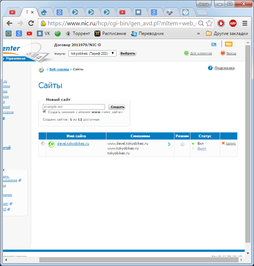 Далее произвести регистрацию доменного имени, ввести его в строке «Новый сайт» и нажать кнопку «Создать». Согласиться с предложением включить автоматическую поддержку зоны вашего домена в системе DNS.