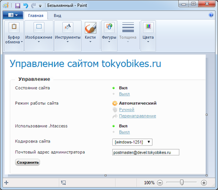 Рисунок 9 – Управление сайтом tokyobikes.ru