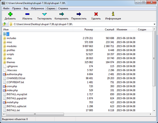 Переходим в папку devel.tokyobikes.ru/docs. Нужно удалить из нее файл «index.html», после чего загрузить содержимое разархивированного дистрибутива Drupal в папку docs. Загрузить папки и файлы, полученные при разархивации русификатора, также в папку docs.