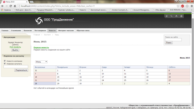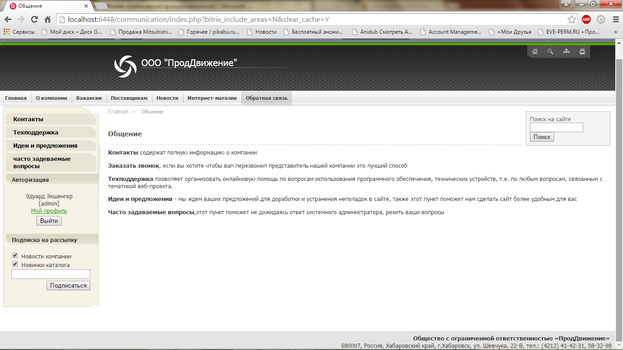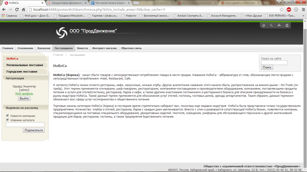 – выполнен сравнительный анализ систем управления содержимым и выбрана среда разработки сайтов 1С-Битрикс, поскольку она обеспечивает интеграцию с базой данных о наличии товаров «1С: Предприятие»;
