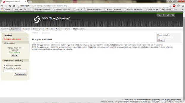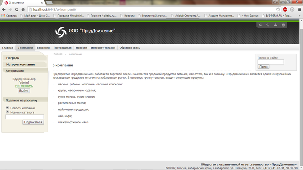 В ходе выполнения выпускной квалификационной работы было выявлено, что для более успешного продвижения и увеличения продаж товаров ООО «ПродДвижение» необходимо разработать сайт компании для ее представления в сети Интернет и реализовать интернет-магазин с возможностью дистанционного оформления заказов.