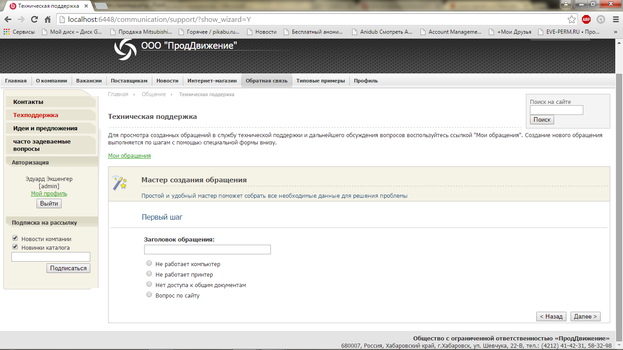 Рисунок Б.7 – Страница «Техническая поддержка»
