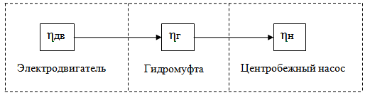 Совокупность средств, образующих насосный агрегат представляет собой последовательно соединенные: двигатель, гидромуфта и насос. Структурная схема насосного агрегата представлена на рисунке 2.5.