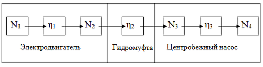 1) при схеме, включающей в себя электродвигатель, гидромуфту, центробежный насос. Схема системы представлена на рисунке 2.6 .