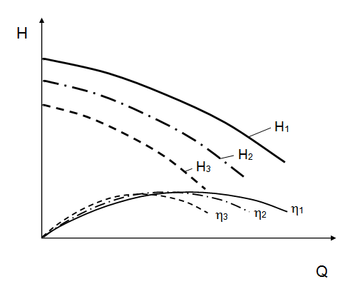 Рисунок 2.9 – Характеристики центробежного насоса со сменными роторами