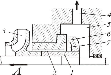 1 – диск; 2 – кольцевой зазор; 3 – рабочее колесо; 4 – трубка; 5 – разгрузочная камера; 6 – торцевой зазор; 7 – промежуточная камера.
