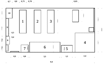 6 – Воздушный выключатель ВОВ-25А; 8 –Электрощитовая; 9 – Гардероб; 10 – Стол