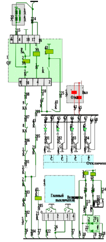 ж) при включении выключателя (блок автоматов) SF22 на 10А от провода Н022 питание поступает на выключатель ’’Главный выключатель’’ S20.