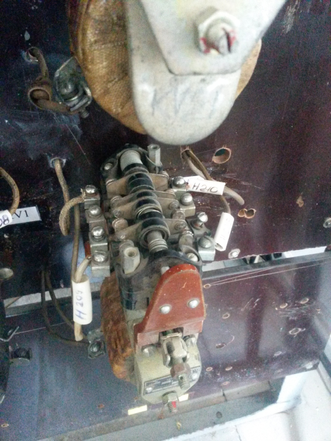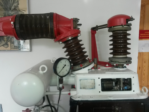 На лабораторном стенде используется главный выключатель ВОВ-25 образца 1995 года (рисунок 2.5), который морально устарел. Кроме того, имеется сильный износ контактных поверхностей, браковочная толщина поворотного ножа главного выключателя. Работа при таких настройках главного выключателя небезопасна, так как при отсутствии срабатывания главного выключателя не исключен пробой электрической дуги по изоляторам выключателя, а это, в свою очередь, может привести к разрушению изолятора. Таким образом, возникает задача замены используемого выключателя на более новый.