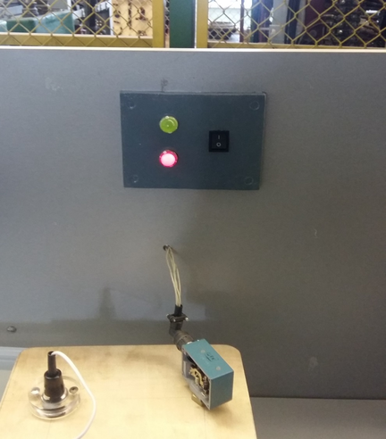 Фото стенда при срабатывании датчика температуры представлено на рисунке 4.4