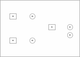 Для простоты эксплуатации лабораторного стенда предлагается создать лицевую панель, на которой будут находиться автоматические выключатели «S1», «S2» и «S3» для включения и отключения реле, а так же индикаторные лампы «E1», «E2», «E3», «E4» для отображения рабочего состояния реле. Лицевая панель приведена на рисунке 2.2.