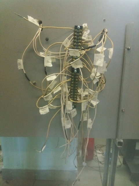 После того как все провода соединены со всеми реле, выключателями и индикаторными лампами, провода подписываются для облегчения их монтажа к клеммам и соединяются по схеме рисунка 2.3. Изображение собранной цепи лабораторного стенда приведено на рисунке 3.7.