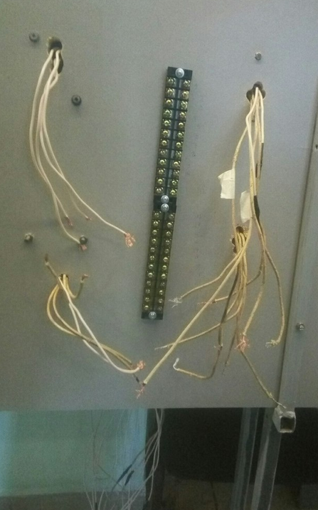 Вся проводка стенда соединяется с обратной стороны вертикальной панели стенда и крепится на шины с болтовыми зажимами, установленные так же с задней стороны. Изображение шин приведено на рисунке 3.6.