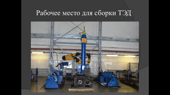 Далее в разделе «Общие сведения» показана расстановка оборудования в электромашинном цехе, сделаны фотографии ремонтных позиций для лучшего визуального восприятия обучающимися, чтобы дать возможность преподавателю показывать перемещение тягового электродвигателя при производстве ремонта по цеху между ремонтными позициями. Слайды, показанные на рисунках 2.5, 2.6, 2.7, 2.8, 2.9, 2.10, 2.11, 2.12, показывают план и расстановку оборудования электромашинного цеха.