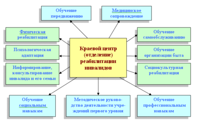Медицинская реабилитация. Она направлена на восстановление или компенсацию той или иной утраченной функции или на возможное замедление заболевания. Психологическая реабилитация. Это воздействие на психическую сферу инвалида, направленное на развитие и коррекцию индивидуально-психологических особенностей личности. Педагогическая реабилитация. Под этим понимается комплекс мероприятий воспитательного характера в отношении детей, направленный на то, чтобы ребенок овладел необходимыми умениями и навыками по самообслуживанию, получил школьное образование. Важно выработать у ребенка психологическую уверенность в собственной полноценности и сформировать правильную профессиональную ориентацию.