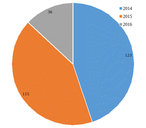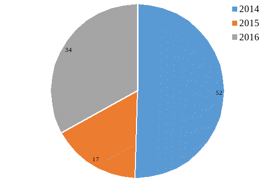 Рисунок 1.14 – Распределение неплановых ремонтов моторно-осевых подшипников за период 2014-2016 гг.