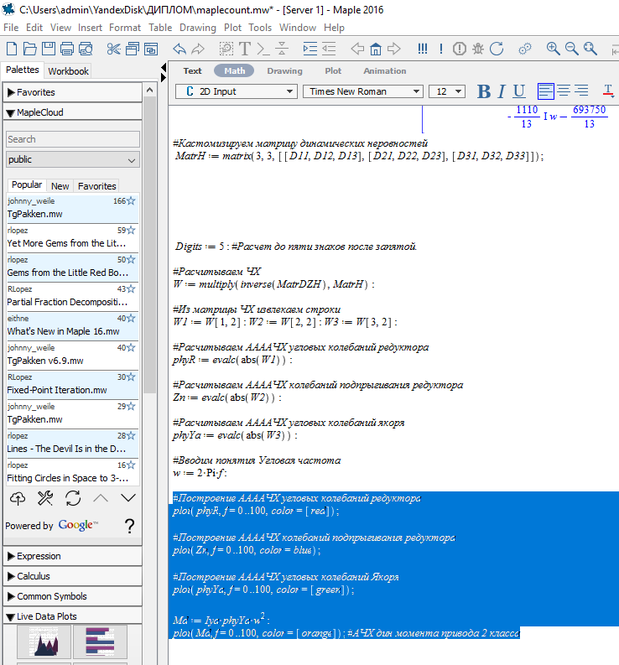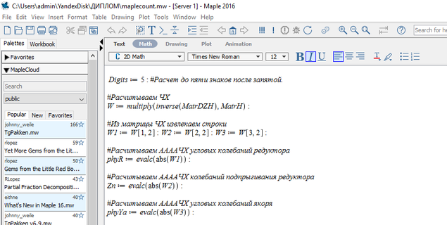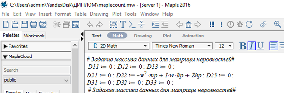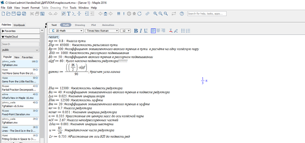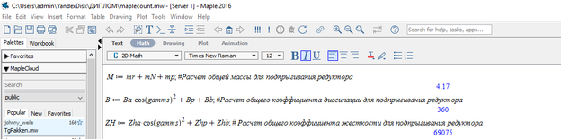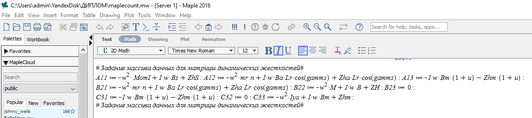 Рисунок 5.6 – Подставленные значения переменных в программу Maple