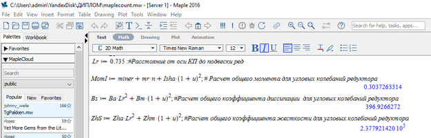 Упрощенная переменная MomI – расчет общего момента для угловых колебаний редуктора; Bs – Расчет общего коэффициента диссипации для угловых колебаний редуктора; ZhS – Расчет общего коэффициента жесткости для угловых колебаний редуктора.