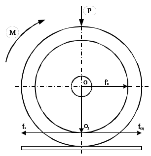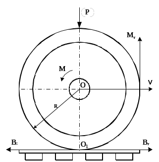 Рассмотрим силы, действующие на бандаж колесной пары во время движения электровоза при ослаблении посадки бандажа на колесном центре. А также причины ослабления его посадки на колесном центре.