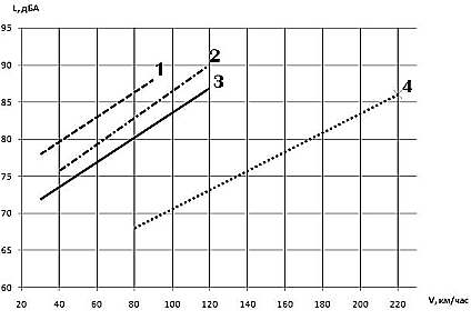 Рисунок 3.1 Зависимость шума железнодорожного поезда от скорости