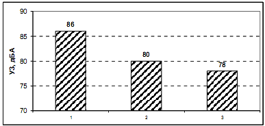 Рисунок 4.2 Уровни звука грузовых вагонов, оборудованных