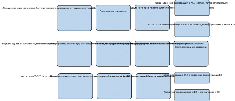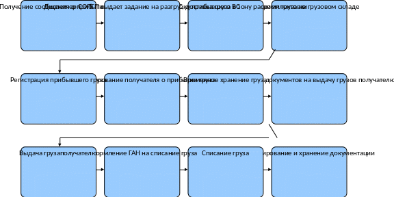 Рис. 9. Технологический процесс приема, обработки и отправления грузов.