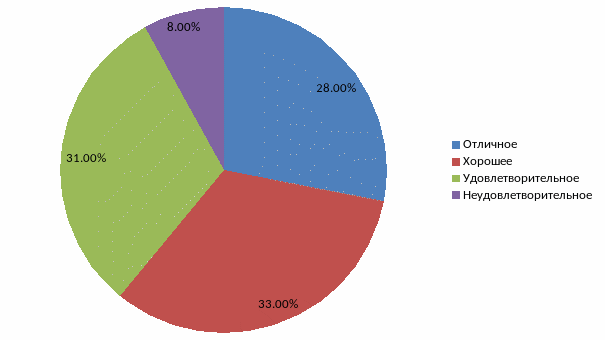 Более половины респондентов, а именно 61% указали что качество обслуживания в турфирме хорошее и выше, 31% ответил что качество обслуживания удовлетворительно и 8% что не удовлетворительно, а значит, на предприятии есть проблемы, которые волнуют клиентов