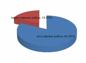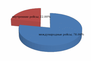 В структуре рейсов по выполненному пассажирообороту как в 2013 г., так и 2014 г. преобладали регулярные международные рейсы.