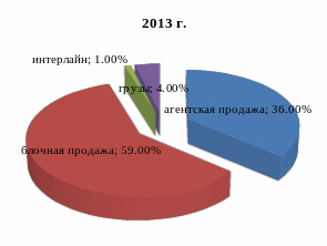 Структура рейсов по выполненному пассажирообороту в 2013 году представлена на рисунке 2.6.