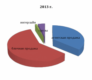 В структуре продаж как в 2013 г., так и 2014 г. преобладали блочные и агентские продажи.