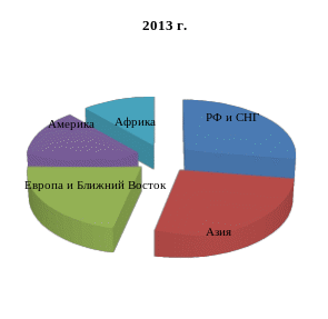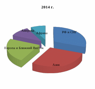 На основе данных таблицы 2.4 и рисунка 2.4 можно отметить, что основным направлением коммерческой деятельности приносящий основной доход для ОАО «АК «ТРАНСАЭРО» как в 2013 г., так и 2014 г. является перевозки в пределах РФ и стран СНГ (более 27 %). Причем в 2014 г. наблюдается рост перевозок в данном направлении.