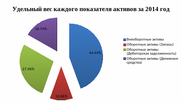 Рисунок 2.8. Удельный вес каждого показателя активов за 2014 г.