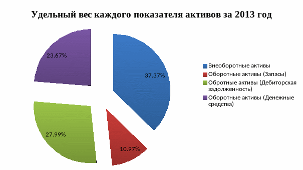 Рисунок 2.7. Удельный вес каждого показателя активов за 2013 г.
