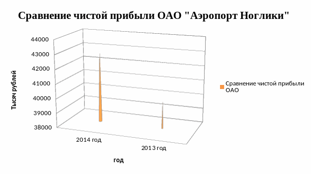 Рисунок 2.14. Сравнение чистой прибыли ОАО «Аэропорт Ноглики» за 2013-2014 гг.