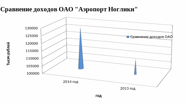 Наглядно сравнение доходов ОАО «Аэропорт Ноглики» за 2013 – 2014 гг. представлено на рисунке 2.12.