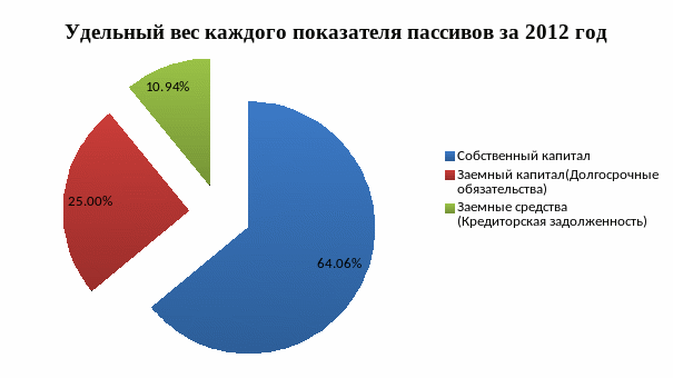 Рисунок 2.9. Удельный вес каждого показателя пассивов за 2012 г.