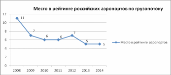 Рисунок 2.4. Аэропорт Хабаровск (Новый) в рейтинге российских аэропортов в 2008-2014 гг. по прямому грузопотоку
