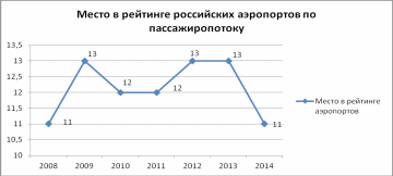 Рисунок 2.3. Аэропорт Хабаровск (Новый) в рейтинге российских аэропор- тов в 2008-2014 гг. по прямому пассажиропотоку