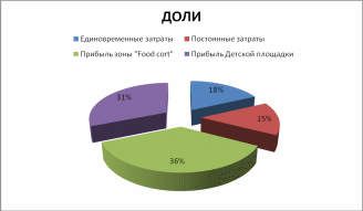 Общая годовая прибыль от зоны «Food cort» + Кофе-точки составляет: 1 506 000 руб. Общая годовая прибыль от детской площадки предположительно составит: 1 299 600 руб. Единовременные среднегодовые затраты за 3 года составили 750 630 руб. Постоянные затраты на обслуживание этих двух зон составят 608 047 руб.