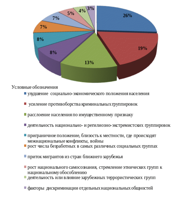 По результатам опроса, проведенным научно-образовательным центром транспортной безопасности, основными причинам роста терроризма в России респонденты указали дынные приведенные на рисунке 1.1.