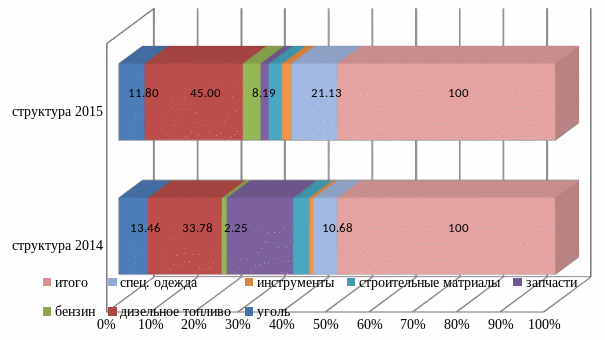 Структура запасов по Свободненскому отделу материально-технического обеспечения за 2014-2015 гг. отражена на рисунке 2.11