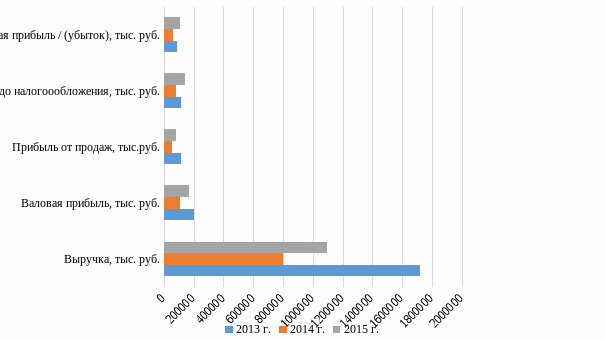 Рисунок 2.3 – Динамика абсолютных показателей финансовых результатов за 2013–2015 гг. в ЗАО «ШУ «Восточное»