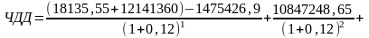 Примечания: ЧДД (1-й год) = (19633200) – 9685579,12 = (9947620,8);